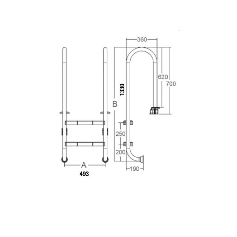 AISI 304 polírozott acél anyagú rozsdamentes létra, utólagosan rögzíthető.
