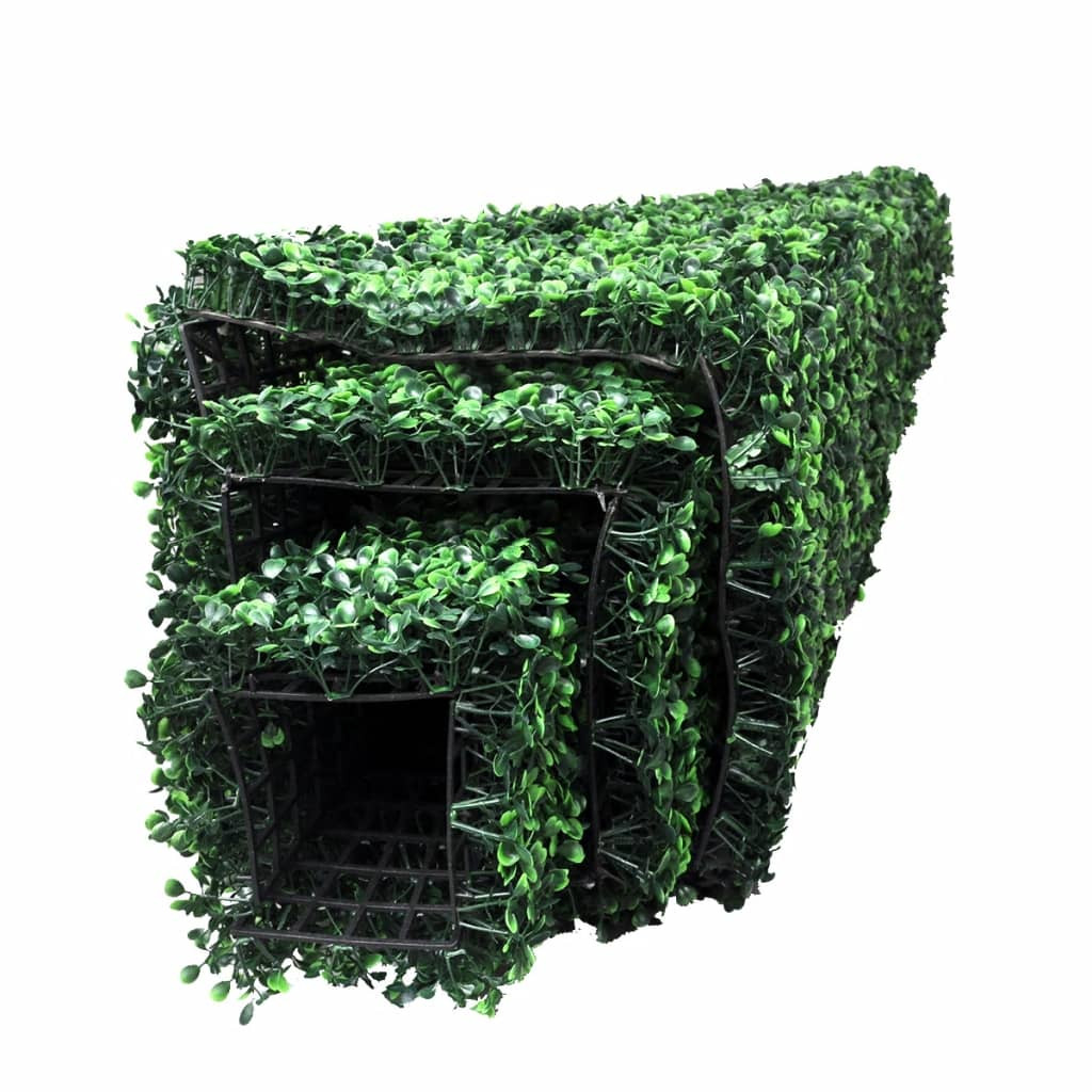 Kiváló minőségű műanyagból készült, így ez a műpuszpáng szett időjárásálló és tartós. Minőségi sövénybokraink műanyag alappal is rendelkeznek az extra stabilitás érdekében.