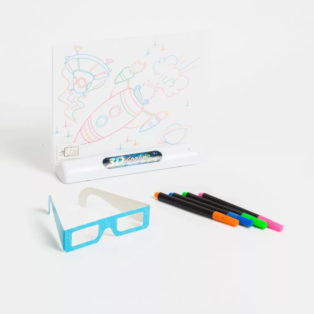 Beépített LED lámpával rendelkező rajztábla, amellyel fluoreszkáló rajzok készíthetőek. A csomag része 4 db színes filctoll, 3 db dinoszaurusz sablon, amely könnyen átrajzolható! A szett segítségével bármilyen rajz készíthető, fejlessze gyermeke kreativitását! A kitámaszóval akár a gyermekszoba dekoreleme is lehet az alkotás. A tábla kiváló alternatívája lehet a hagyományos rajzlapoknak és filctollaknak.
