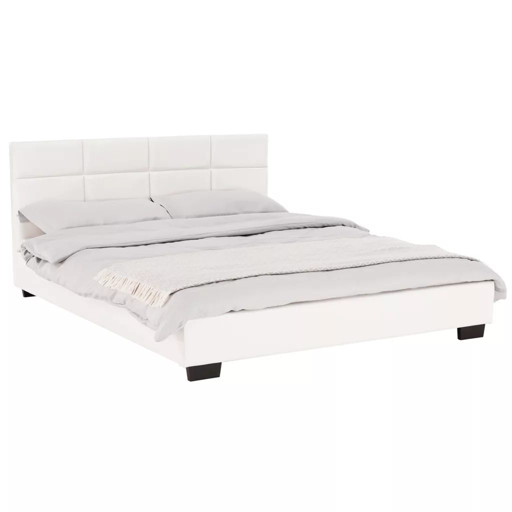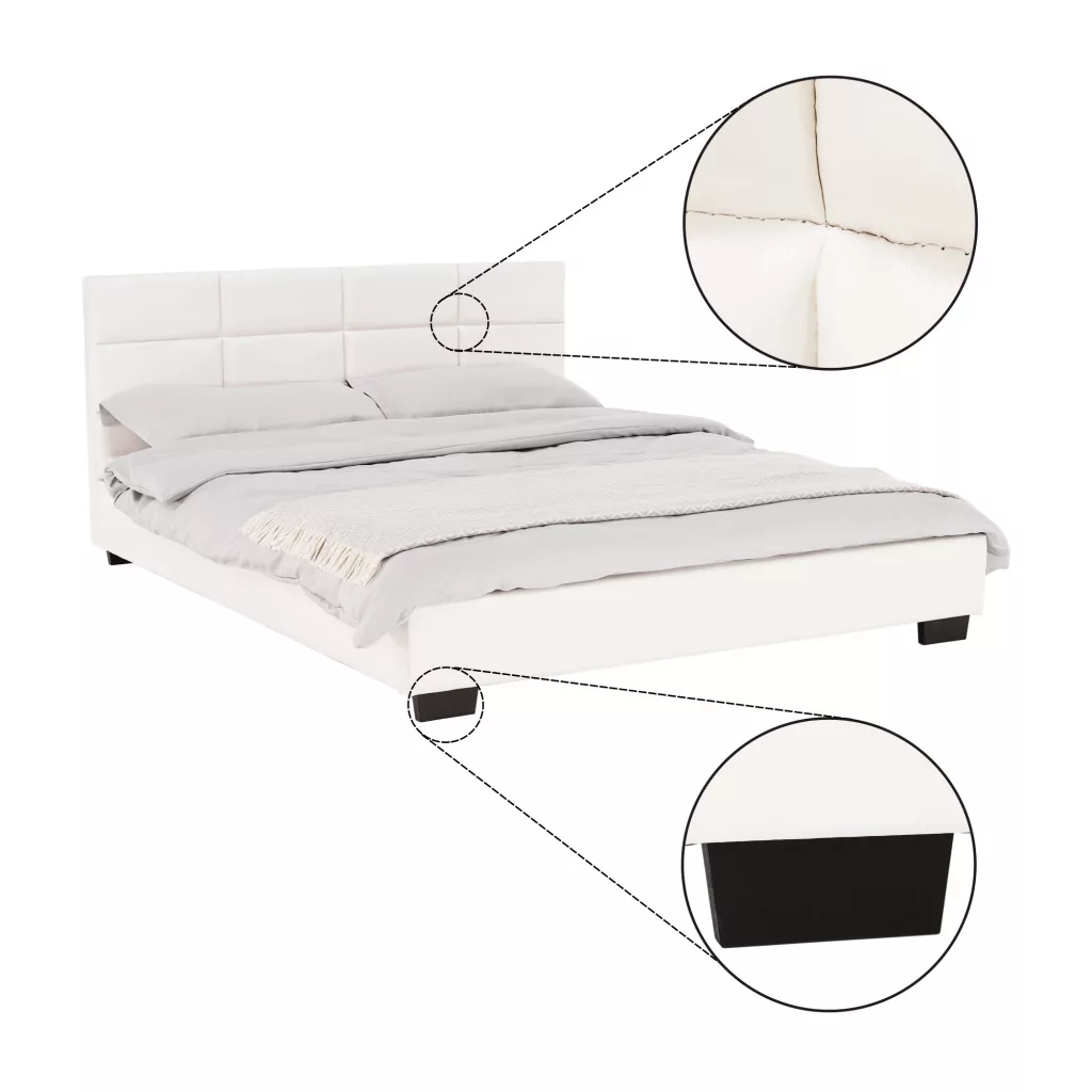 MIKEL franciaágy lécezett ágyráccsal, 160x200. Fekete lábak. Steppelt fejtámla.
