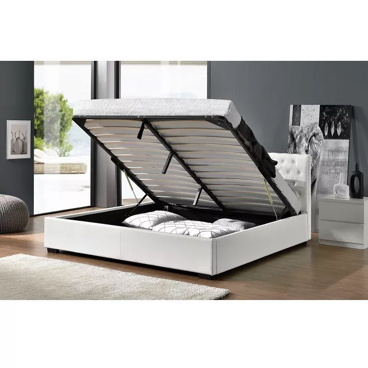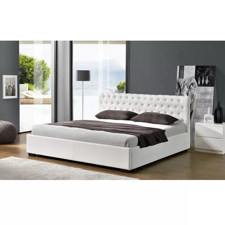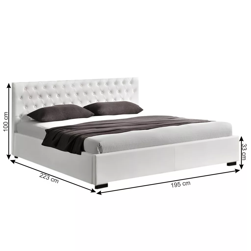 Ágy DORLEN 2 NEW steppelt támlával, rakodótérrel és lamellás ágyráccsal. Fehér textilbőr színben.