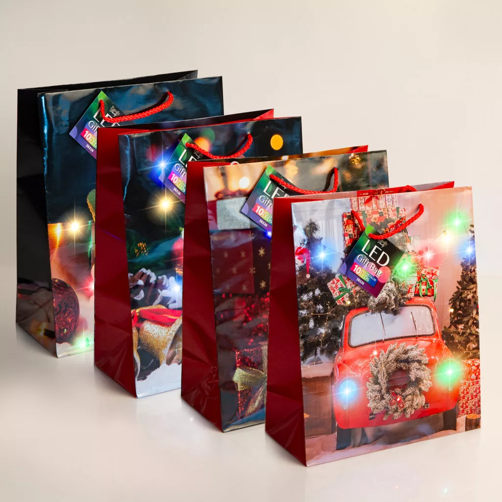 Ez a praktikus ajándéktasak ideális választás lehet a karácsonyi időszakban, születésnapokon, névnapokon vagy más ünnepi alkalmakkor. Ragyogjon ki a tömegből ezzel az LED-es ajándéktasakkal és legyen a figyelem középpontja minden ünnepi eseményen!