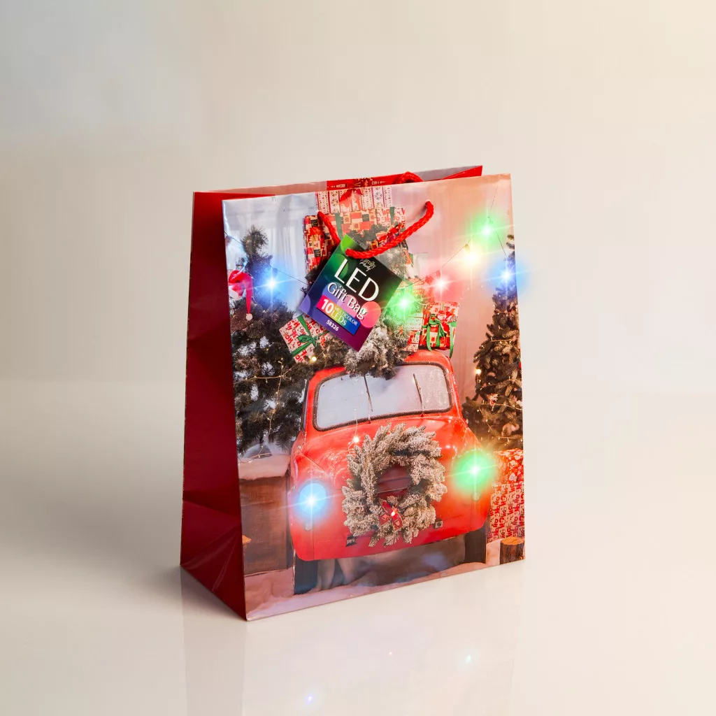 Az ajándéktasak oldalát különleges minta díszíti és kiváló minőségű papírból készült, hogy hosszútávon is tökéletesen szolgáljon. A tasakon elhelyezett LED-ek különleges hangulatot teremtenek, melyek energiájáról a beépített elemek gondoskodnak.