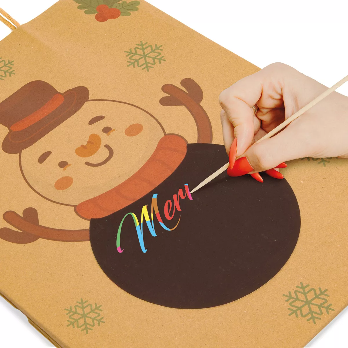 Ha szeretné stílusosan csomagolni ajándékaidat, akkor ez az ajándéktasak tökéletes választás. A táska oldalán található különleges felület teret ad kreativitásunknak, így egyedi üzeneteket, neveket írhatunk vagy rajzolhatunk a táska oldalára. Kiváló minőségű, tartós papírból készült, és ideális bármilyen ajándék csomagolásához. A tasak mérete és kialakítása miatt alkalmas ajándékok, édességek, játékok és más meglepetések csomagolására.