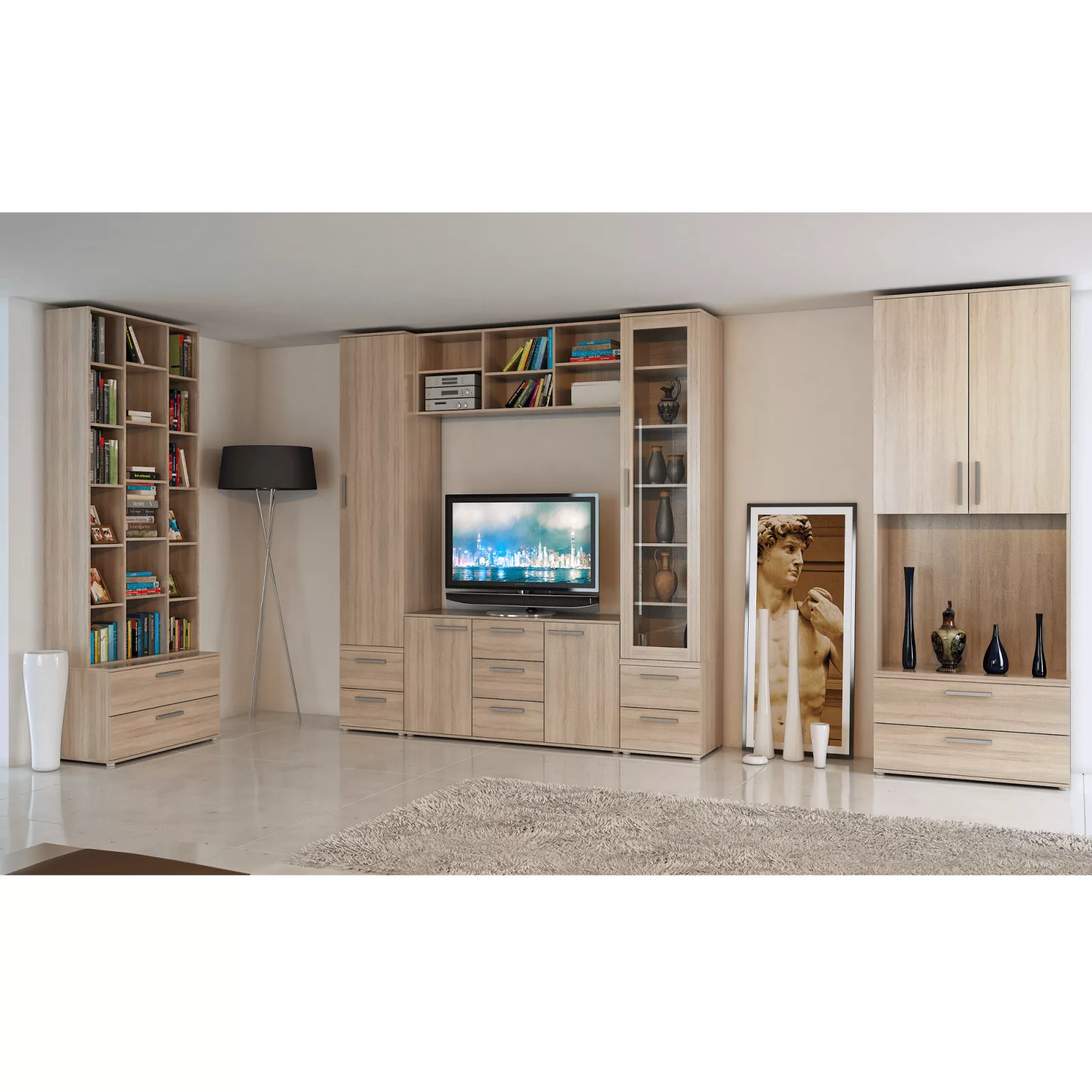 Univerzális, praktikus elemes rendszer, mely alkalmas a nappaliba és maximális rakodóhelyet biztosít minden helyiségben 240 cm-es magasságban.