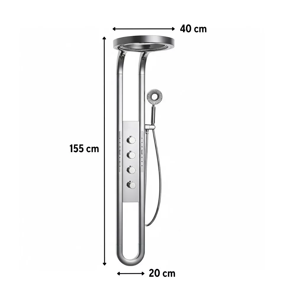 A zuhanypanel rozsdamentes acélból készült, amely garantálja a hosszú élettartamot és a prémium megjelenést. A króm szín modern eleganciát sugároz, amely bármely fürdőszobai környezethez illeszkedik.