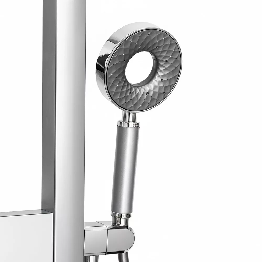 Az Aquajet hidromasszázs zuhanypanel minden zuhanyzást a pihenés és feltöltődés pillanatává tesz. A testfúvókák, a felső zuhany és a kézi zuhany kombinációja egy otthoni mini wellness központot teremt, amely luxust visz a mindennapokba.