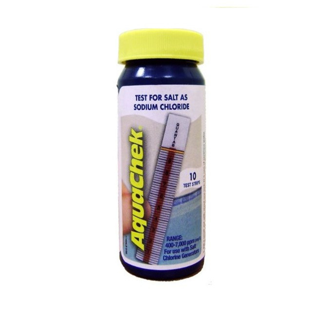 Tesztcsík-készlet, amely a medencevíz sótartalmának gyors és egyszerű mérésére szolgál. A tesztcsíkok segítségével meghatározható a víz sókoncentrációja, ami különösen fontos a sóbontóval felszerelt medencék megfelelő működéséhez.