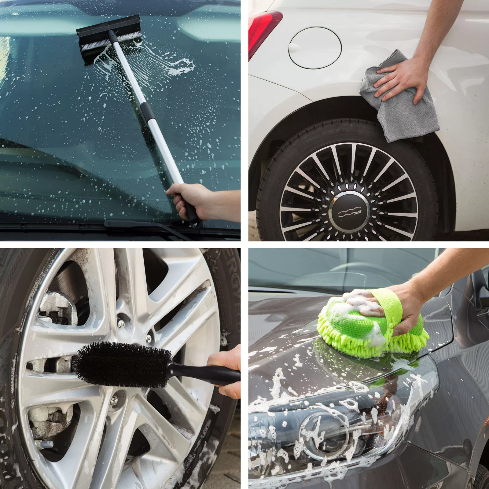 Önnek is mindene az autója, motorja, hajója, repülője? A legkíméletesebb ápolási segédeszközök egyike ez a tisztító szett. Többféle eszköz egy csomagban, hogy minden tisztítandó felülethez hozzáférjen és 100%-osan meg tudja tisztítani őket. Puha, mikroszálas felületű eszközök, amely jó nedvszívó képességgel rendelkeznek. Kíméletesen fellazítják és eltávolítják a szennyeződéseket. Használatuk során bő autósamponos vizet alkalmazzon. Ideális lehet háztartásoknak.