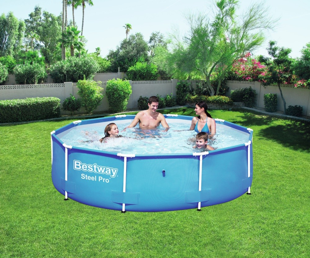 Az erős PVC medence testet csőváz tartja, amelyek a testen kialakított füleken keresztül tolva merevítik a szerkezetet.