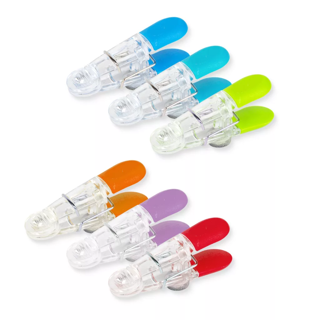 Védje élelmiszereit a kiszáradástól, nedvességtől és a bogaraktól! A Baker's Secret konyhai csipesz szett ideális választás az élelmiszerek frissen tartására, mint például a tea, édességek vagy fagyasztott élelmiszerek. Kiváló minőségű műanyagból készül, amely újra felhasználható. A hátoldalán lévő mágnesnek köszönhetően akár hűtőszekrényen elhelyezett üzenet rögzítésére is alkalmas.