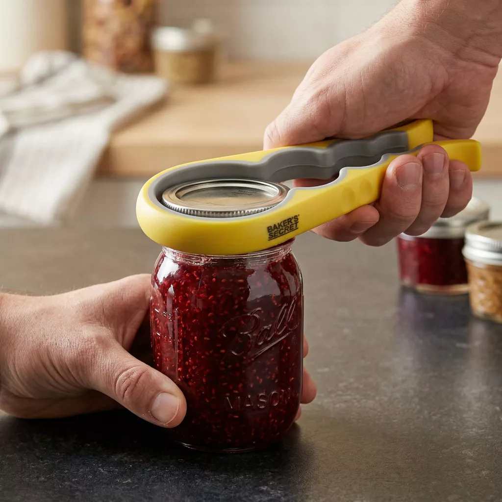 Nyissa ki a befőttesüvegeket, üdítős kupakokat vagy szorosan záródó fedőket könnyedén ezzel a praktikus üvegnyitóval! A rugalmas, többméretű fogónyílásnak köszönhetően különböző méretű üvegekhez és kupakokhoz is ideális, így sokoldalú segítség a konyhában.