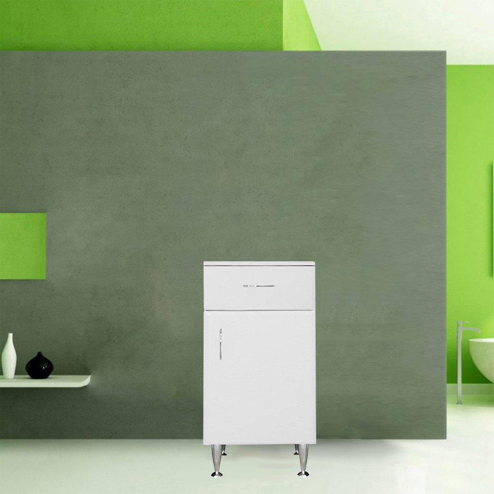 A fürdőszobabútor kevés helyet foglal viszont tágas pakolórésszel rendelkezik ahol kényelmesen elférnek a fürdőszobai pipere eszközök. Kevés helyigénye miatt kisebb fürdőszobák berendezésére is alkalmas, például panel lakásokban. A termék magas minőségű bútorlapból készül és színben passzoló élzárókkal van ellátva.