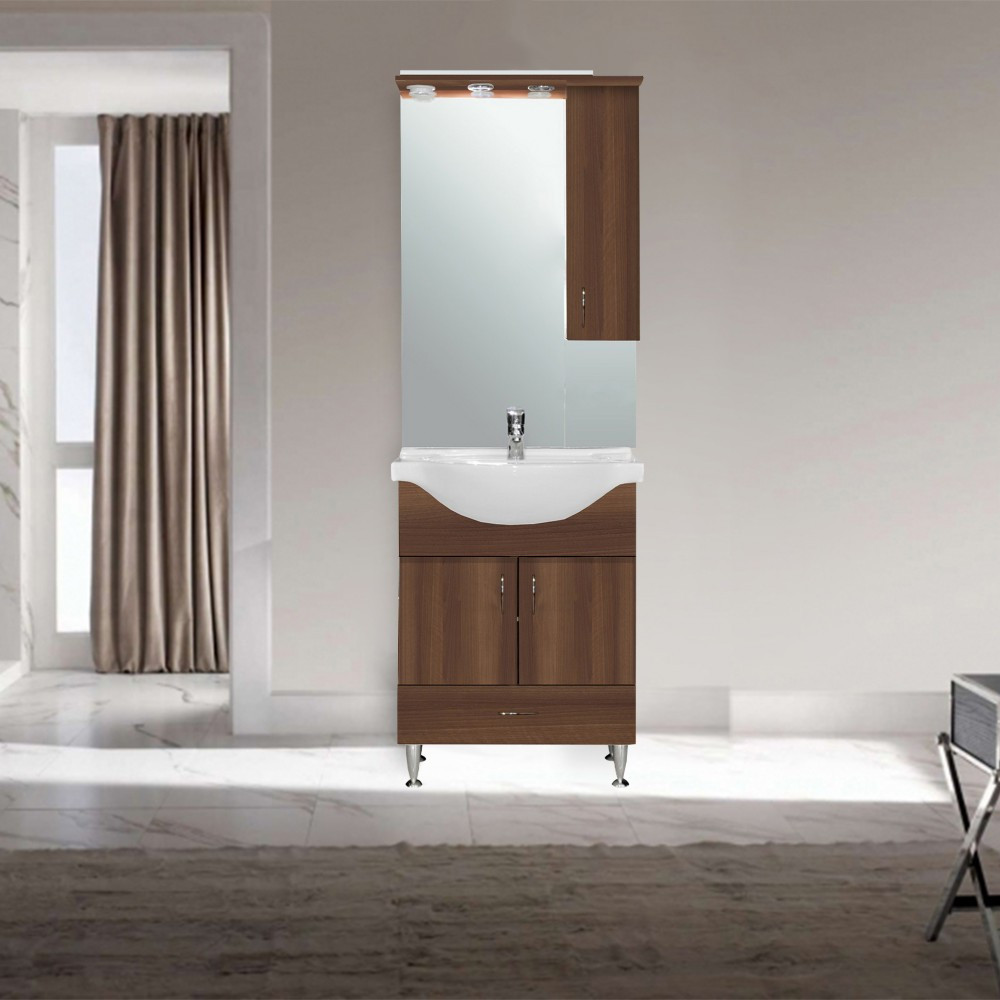 A funkcionalitás mellett természetesen a bútor megjelenésére is nagy figyelmet fordítottak. Aida dió színének és klasszikus vonalainak köszönhetően harmóniát teremt az összes fürdőszoba hangulatában. A bútor anyaghasználatából adódóan (bútorlap) a korpusz oldal színe eltérhet a magasfényű MDF front színétől.