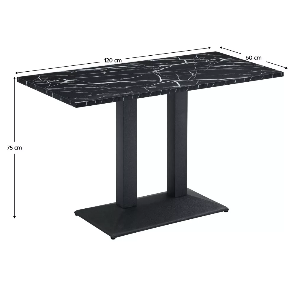 Bisztró asztal, fekete márvány/fekete, 120x60 cm, RINALDO TYP 2