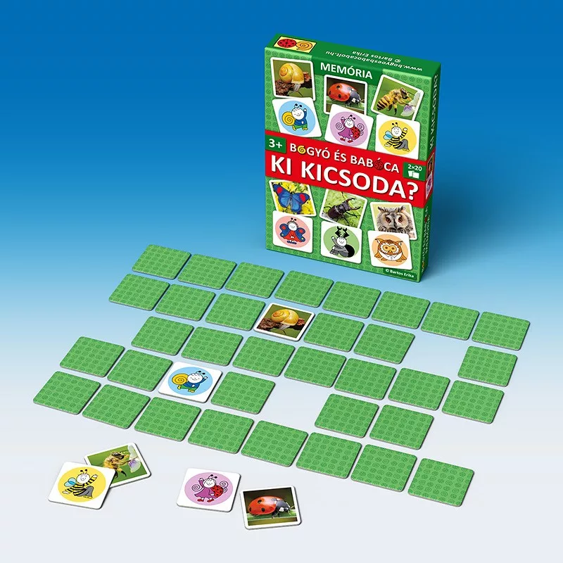 A játék Bartos Erika: „Ki kicsoda?” című könyve alapján készült, mely elnyerte a legnépszerűbb gyerekkönyvnek járó Libri Irodalmi Díjat. A hagyományos memóriákhoz hasonlóan meg kell találni a lapok párját, de most nem két egyforma kártyát kell keresni, hanem például Bogyót a valódi csiga fotójával, Babócát a katicabogár fotójával kell összepárosítani.