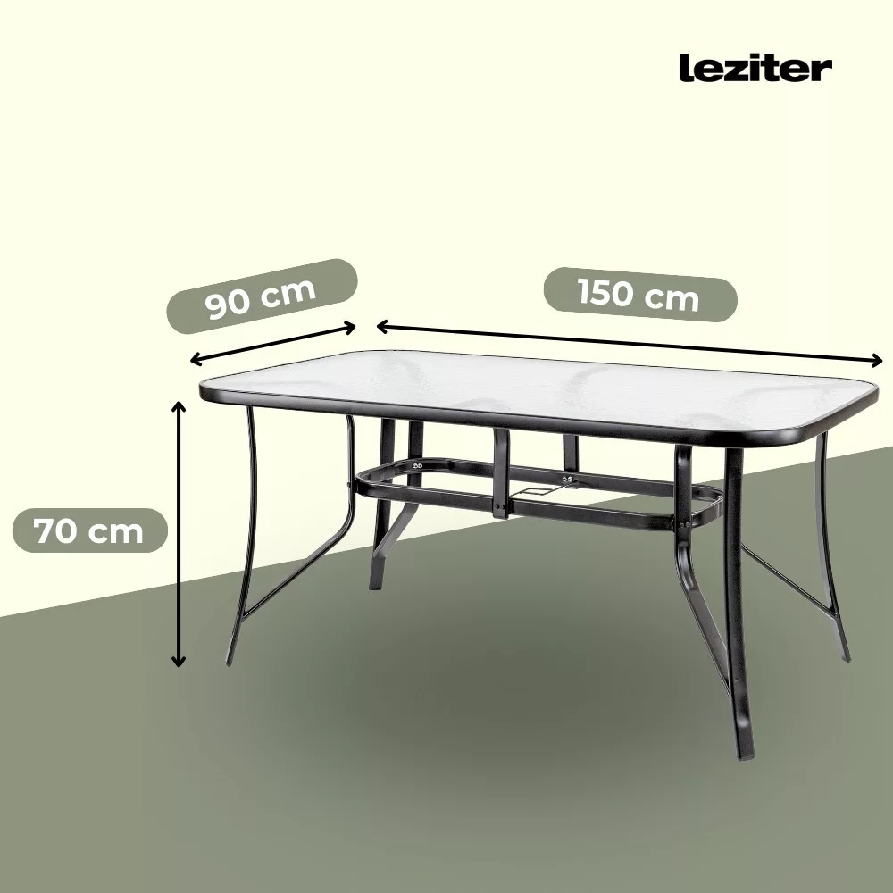 A fémvázas üveg kerti asztalok tartósak és ellenállnak az időjárási viszonyoknak, például esőnek vagy napfénynek. A 42x14 mm-es vastag acél váz porfestett bevonata biztosítja a korrózióállóságot és a hosszú élettartamot.
