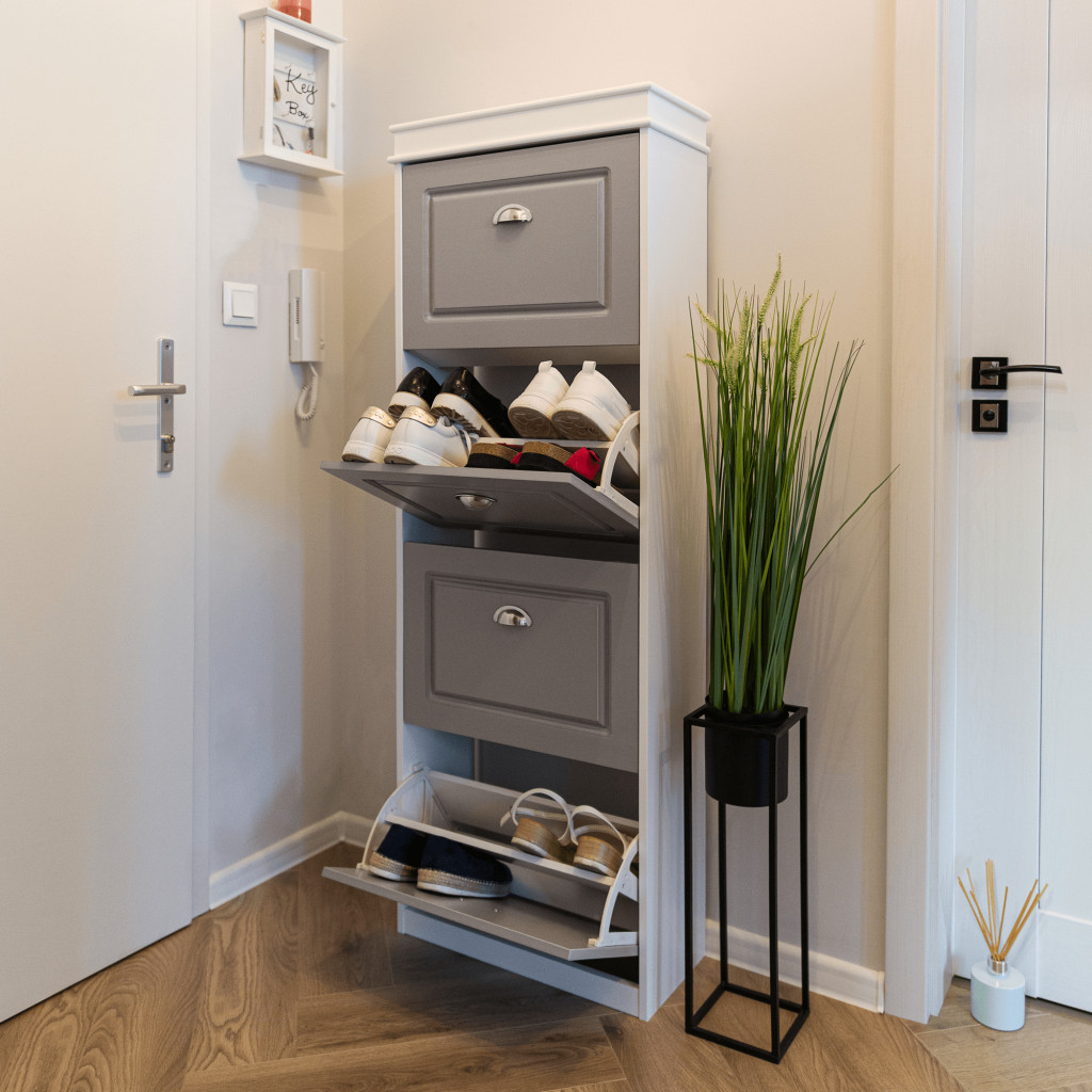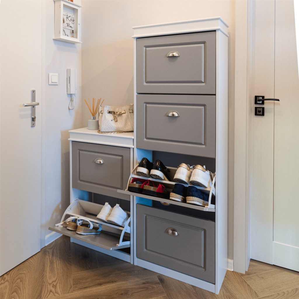 Cipőpolc, 4-soros, fehér/szürke, SEBER TYP 3