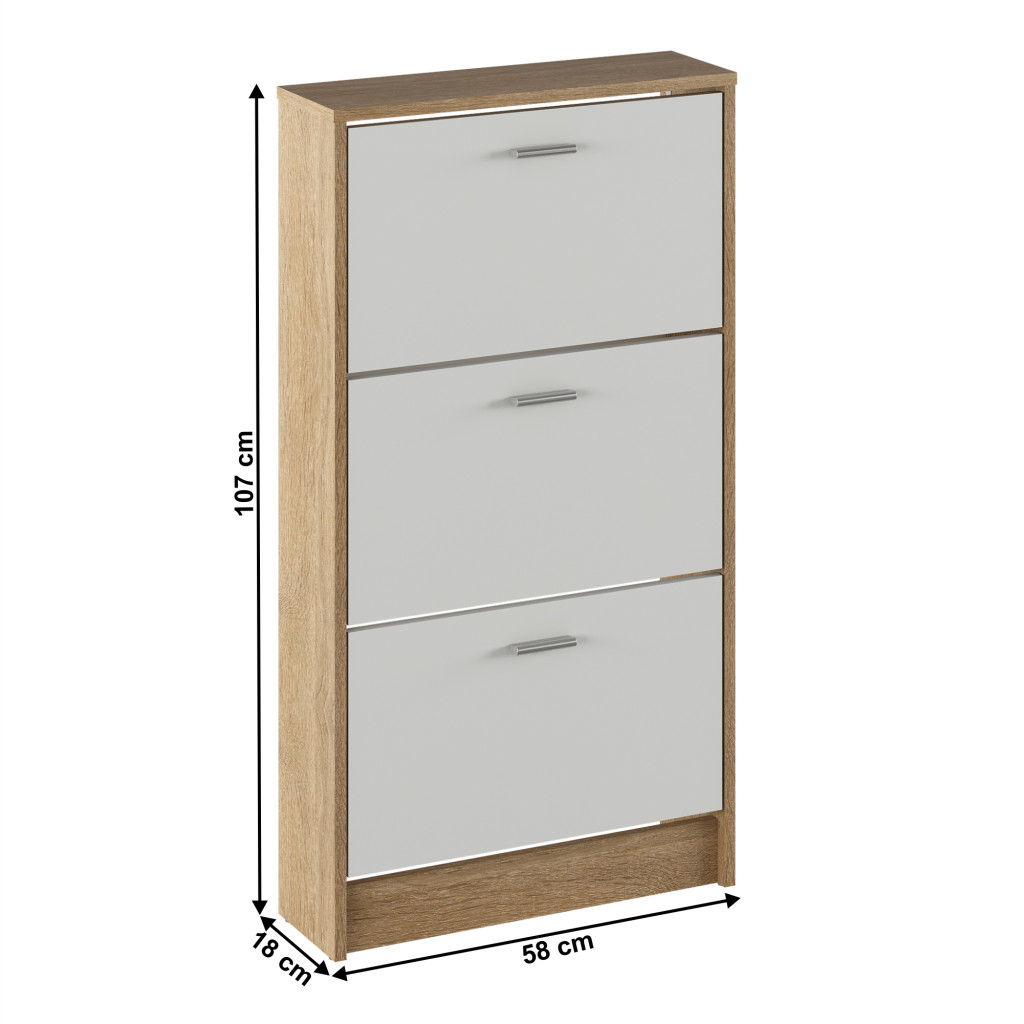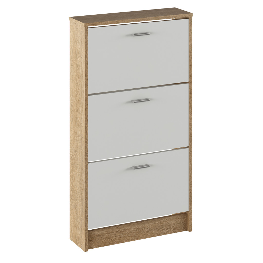 Cipősszekrény, 3 soros, sonoma tölgy/fehér, MOBI 13