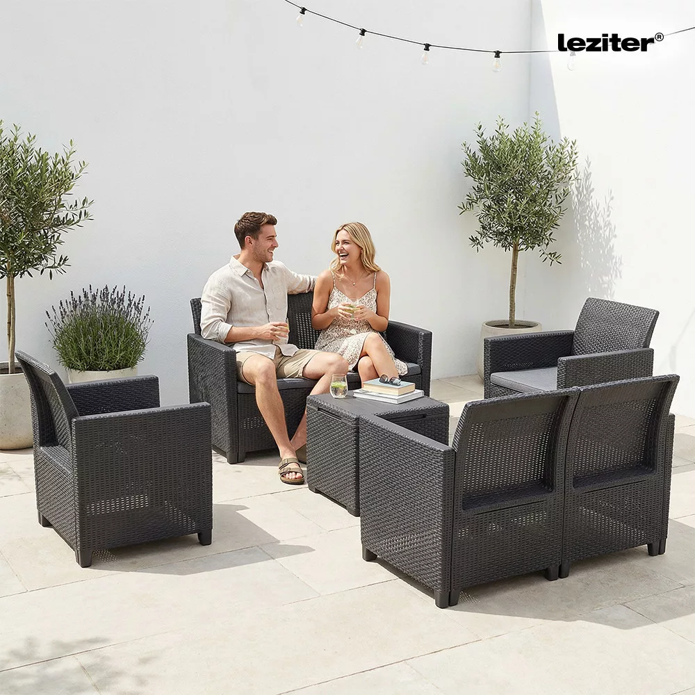 Időtálló bútor: A Grafit színű, stílusos párnákkal rendelkező kerti bútor szett könnyű, egyben tartós vázszerkezettel rendelkezik. Időjárásálló anyagai lehetővé teszik, hogy sok éven át a terasz, vagy az erkély kényelmes darabja maradjon.