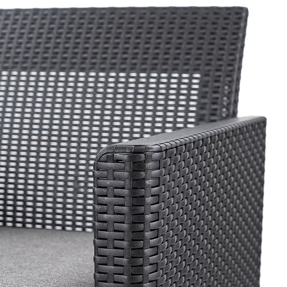 A bútorok modern, sötétszürke színvilága és szögletes formatervezése jól illeszkedik bármilyen kültéri környezethez, legyen szó modern, mediterrán vagy klasszikus stílusról.