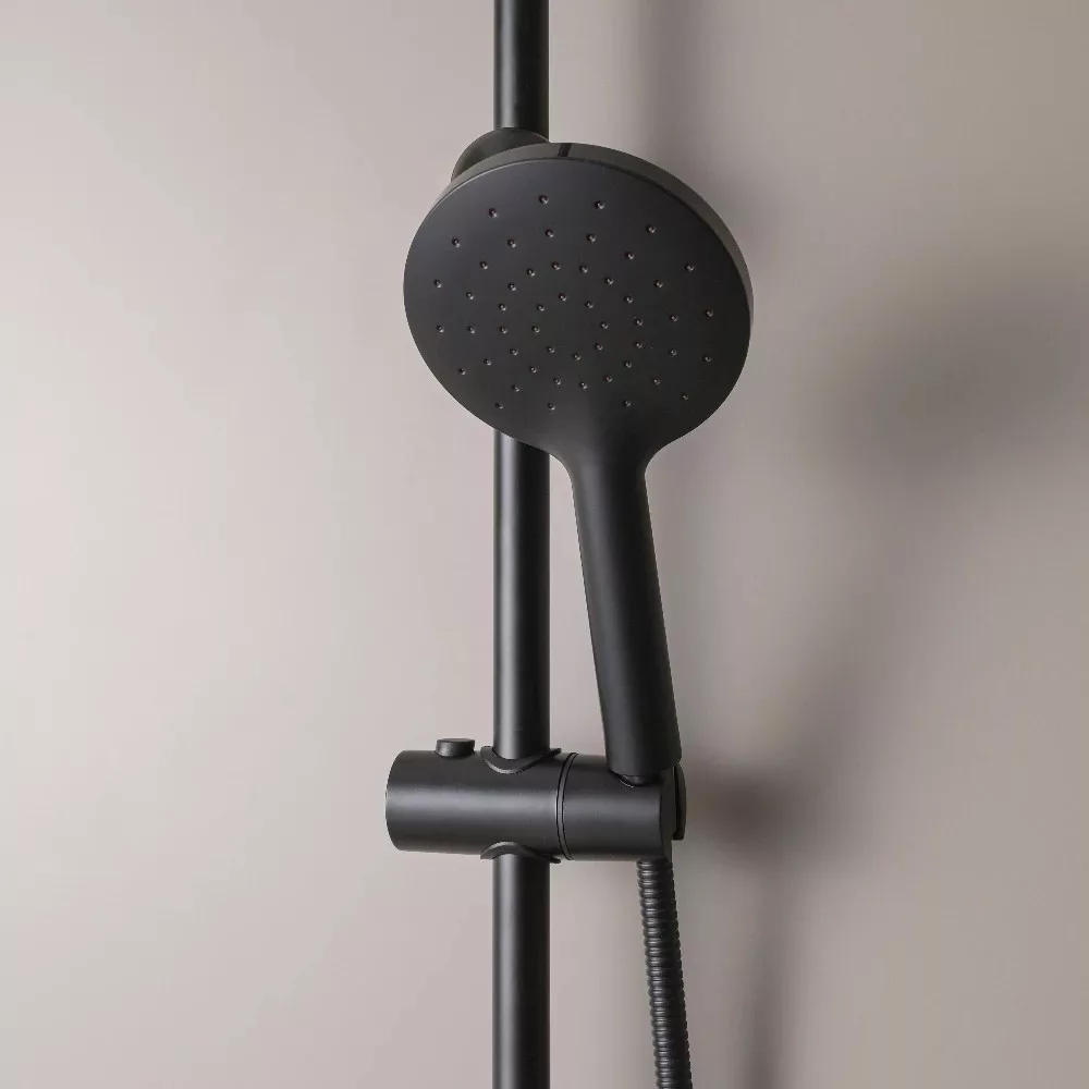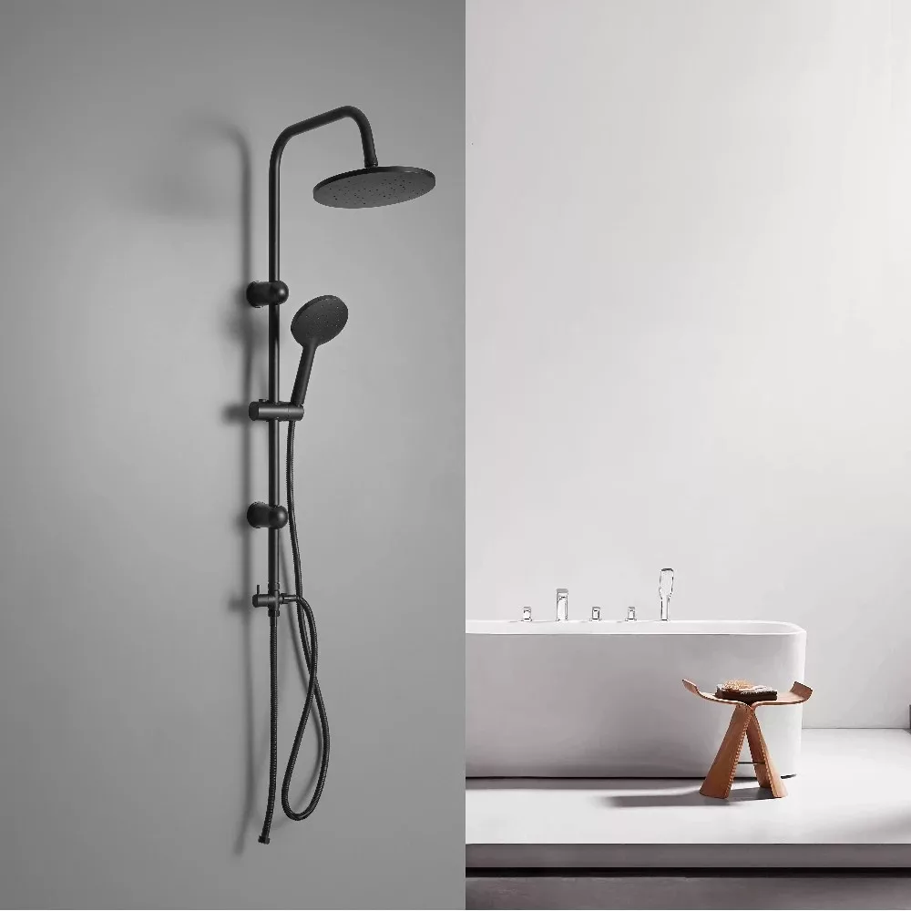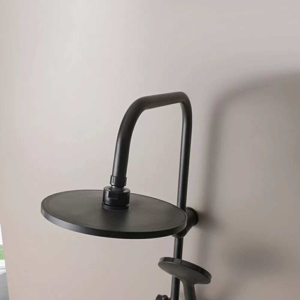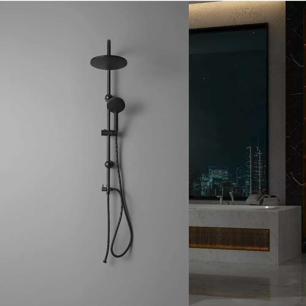 A Corina Black zuhanyszett stílusos és modern megjelenésű. Az ABS kézi zuhanyfej és esőztető minőségi anyagból készült, melynek köszönhetően sokáig élvezheti használatát. A zuhanyszett teste rozsdamentes acélból készül, kézi zuhany magassága állítható.