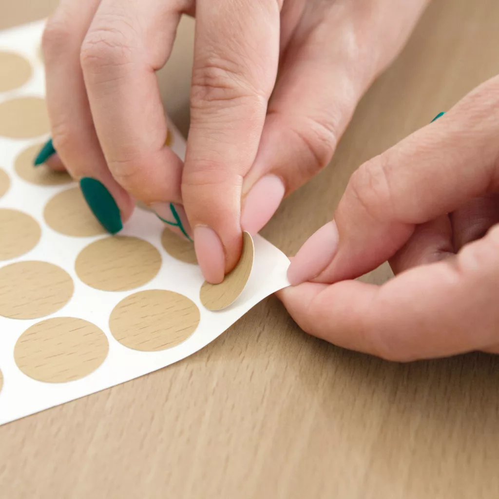 Ideális bármilyen bútoron lévő csavarok eltakarására. Az öntapadós hátoldalnak köszönhetően egyszerűen rögzíthető. A nagy méret lehetővé teszi nagyobb csavarok, esetleges sérülések eltakarását is. Keresse a színben Önnek megfelelőt!