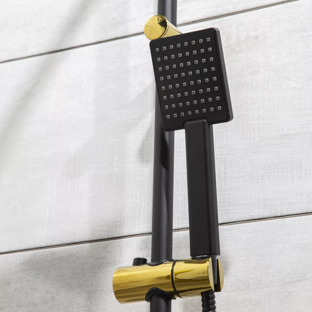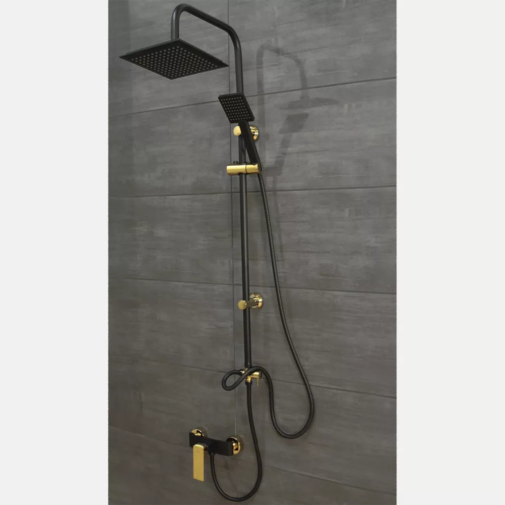 A Denis 63 zuhanykészlet egy olyan termék, amelyet ügyfeleink elvárásainak kielégítésére hoztunk létre. Csodálatos dizájnja jellemzi, amely sok embert vonz. A termék biztosan kielégíti a legigényesebb felhasználókat is. A fekete és az arany kombinációja új trend a fürdőszobában, amely biztosan sokáig uralkodó irányzat lesz.