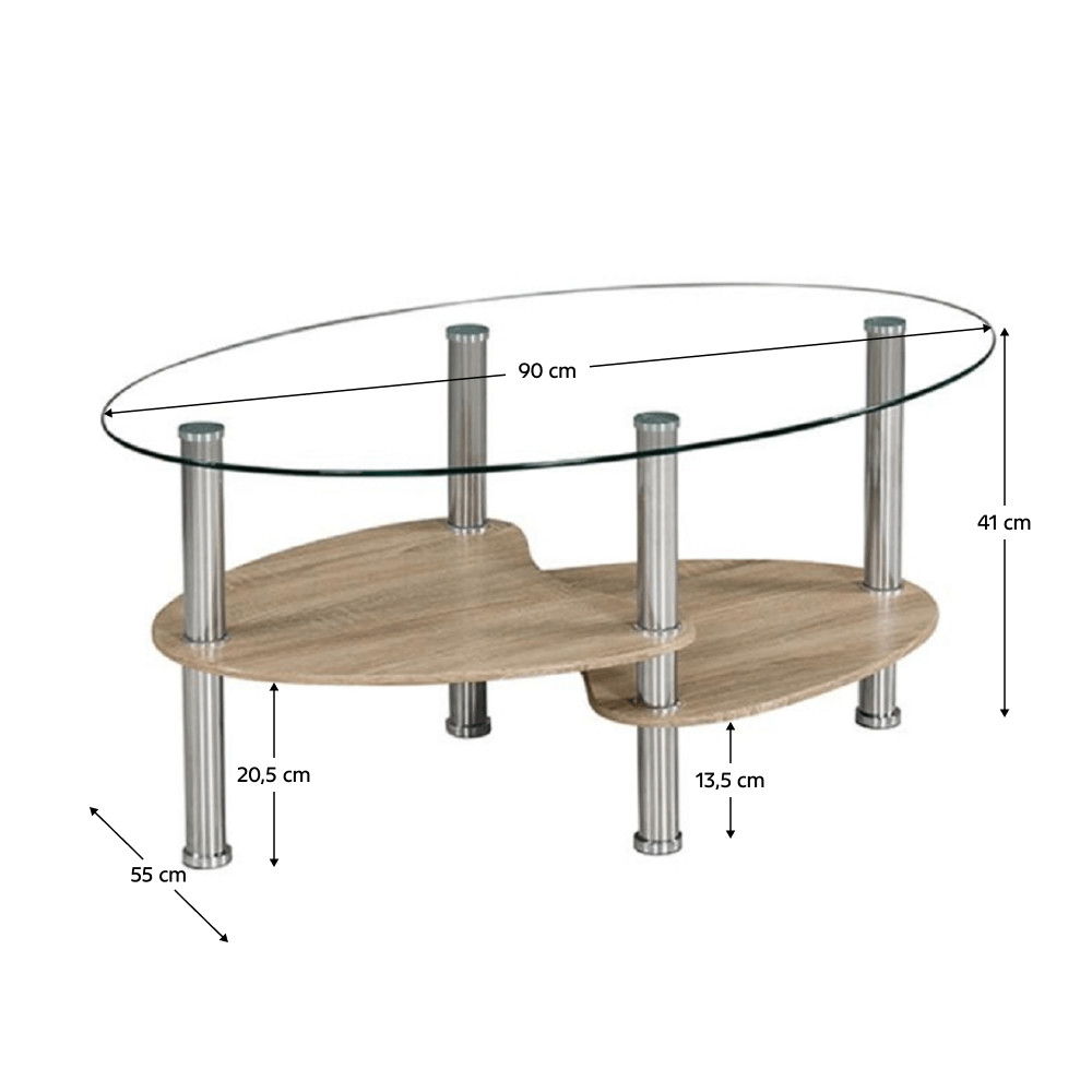 Dohányzóasztal, acél/átlátszó üveg/tölgy sonoma, PANTY NEW