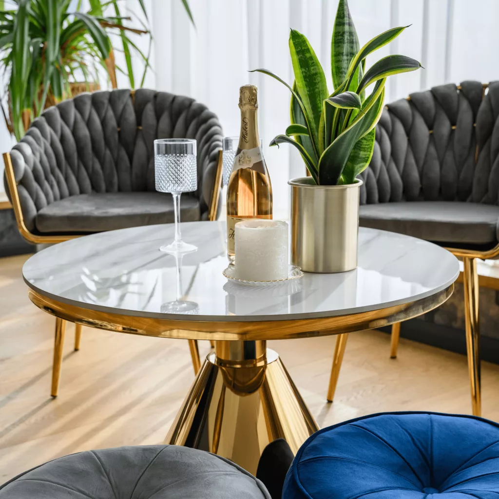 Dohányzóasztal, arany/fehér márvány, GREIS TYP 2