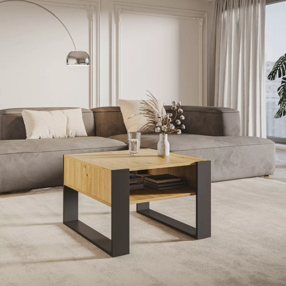 Dohányzóasztal, artisan tölgy/fekete, CARA 2