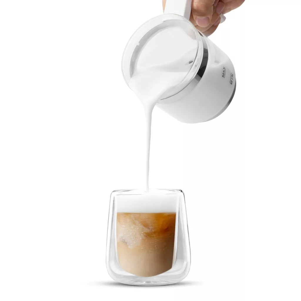 Kifinomult és ergonomikus designnal rendelkezik, amely illeszkedik a modern és hagyományos konyhákba egyaránt. Az egygombos vezérlés lehetővé teszi, hogy a felhasználók könnyedén válasszanak a hideg és meleg tejhab között. Csak nyomja meg a bekapcsológombot és néhány pillanat alatt élvezheti a barista minőségű, krémes tejhabot.