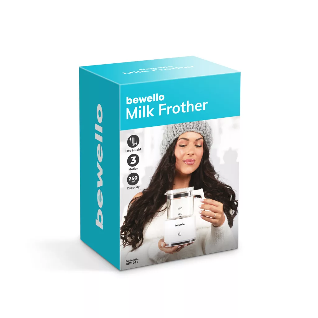 A könnyen tisztítható habosítófej hozzájárul a kiváló minőségű tejhab előállításához. A tartály nagy űrtartalommal és tapadásmentes felülettel rendelkezik, így a használat és a tisztítás is egyszerű. A készülék csendes működése pedig nem zavarja meg a ház nyugalmát, így élvezheti a csendes reggeleket vagy este a pihentető pillanatokat. Az otthoni kávézás szerelmeseinek elengedhetetlen kellék a Bewello termékcsalád legújabb tejhabosítója!