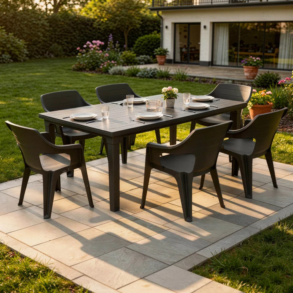 - kényelmes kültéri étkezőszett nagyobb társasághoz
