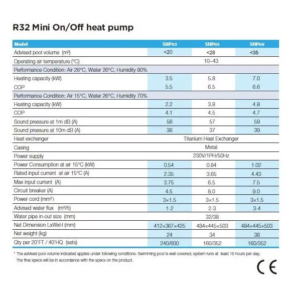 A Mini HP hőszivattyú SHP05 ideális megoldás föld feletti medencék hatékony és gazdaságos fűtésére. Kompakt kialakításának és egyszerű telepíthetőségének köszönhetően gyorsan üzembe helyezhető, így már a szezon elején élvezheted a kellemes vízhőmérsékletet.