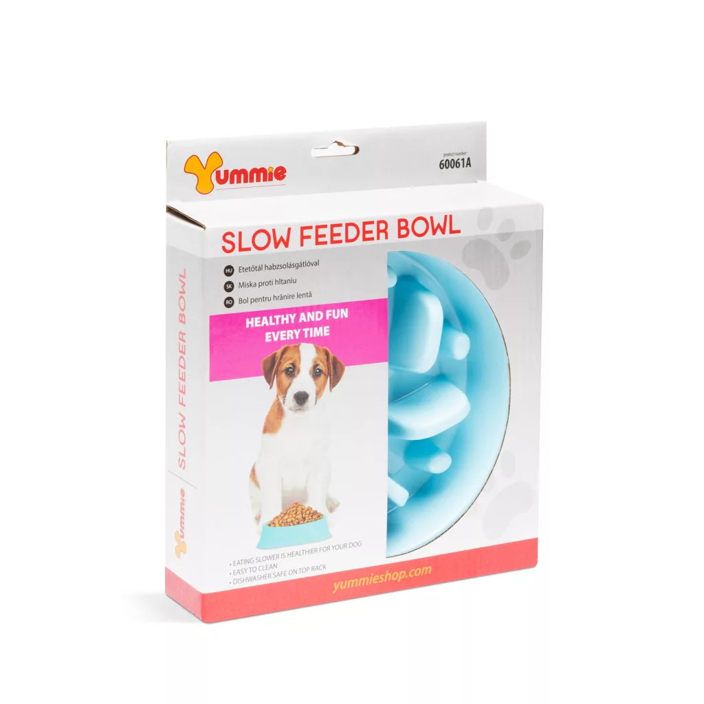 Speciális kialakítású, műanyag etetőtál, amely megakadályozza a háziállat túl gyors ételfogyasztását. A tál aljában lévő kiemelkedéseknek köszönhetően a kutyus, nem tud habzsolni, így elkerülhetőek az esetleges emésztési problémák, felfúvádások. A kutya játékos formában, apránként tudja csak kiszedni az ételt a tál különböző magasságú kiemelkedései közül, ezáltal lassítható, megakadályozható a túlzott napi ételbevitel.