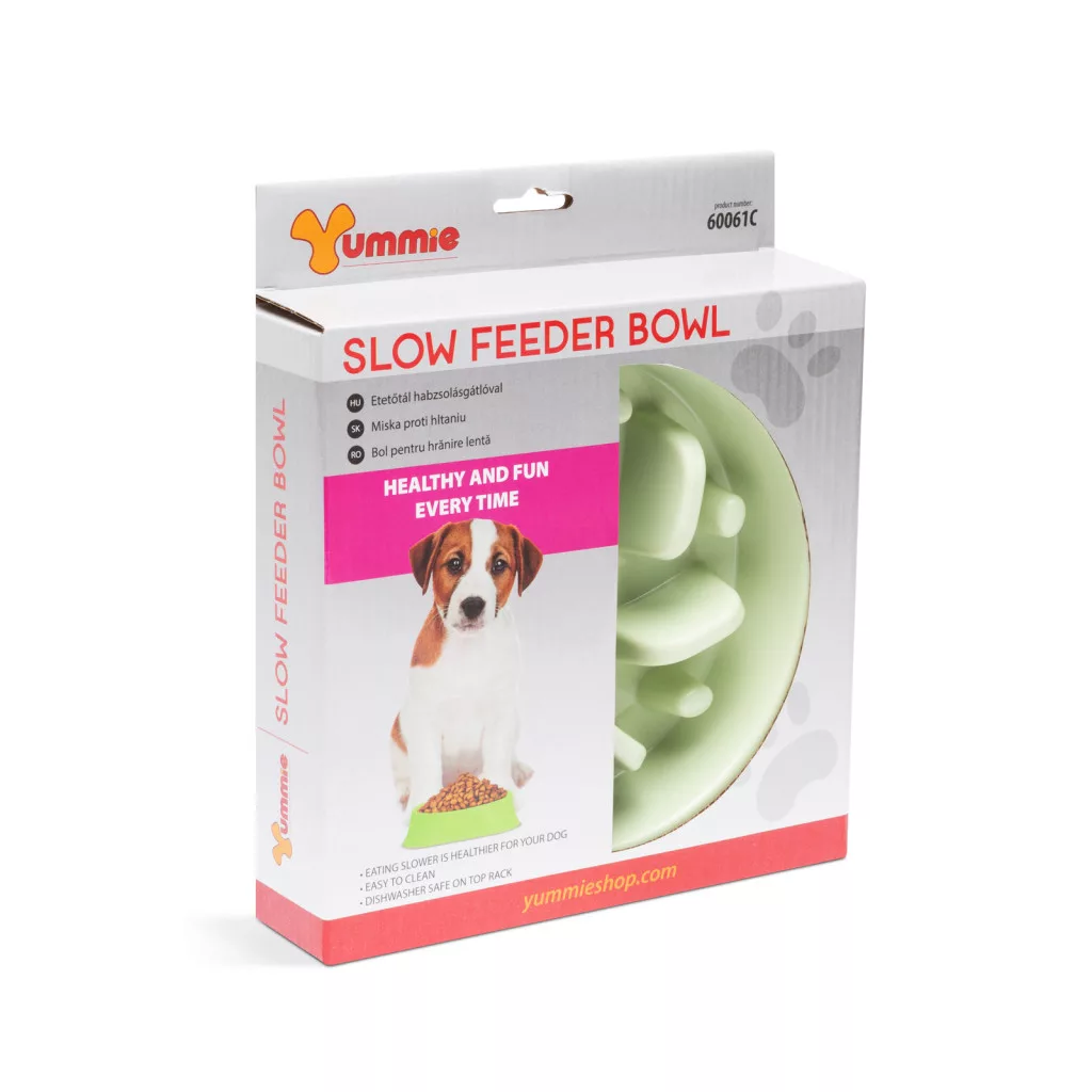 Speciális kialakítású, műanyag etetőtál, amely megakadályozza a háziállat túl gyors ételfogyasztását. A tál aljában lévő kiemelkedéseknek köszönhetően a kutyus, nem tud habzsolni, így elkerülhetőek az esetleges emésztési problémák, felfúvádások. A kutya játékos formában, apránként tudja csak kiszedni az ételt a tál különböző magasságú kiemelkedései közül, ezáltal lassítható, megakadályozható a túlzott napi ételbevitel.