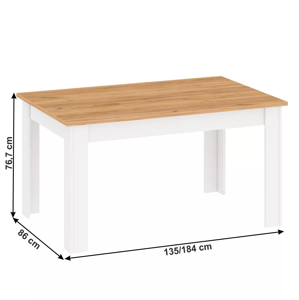 Étkezőasztal, fehér alba/tölgy craft arany, 135-184x86 cm, LANZETTE S