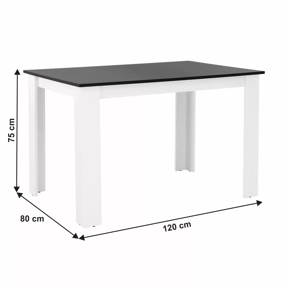 Étkezőasztal, fehér/fekete, 120x80 cm, KRAZ