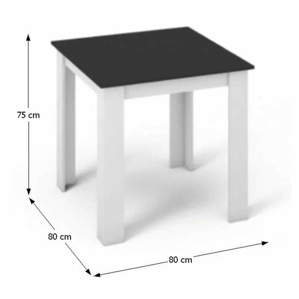 Étkezőasztal, fehér/fekete, 80x80 cm, KRAZ
