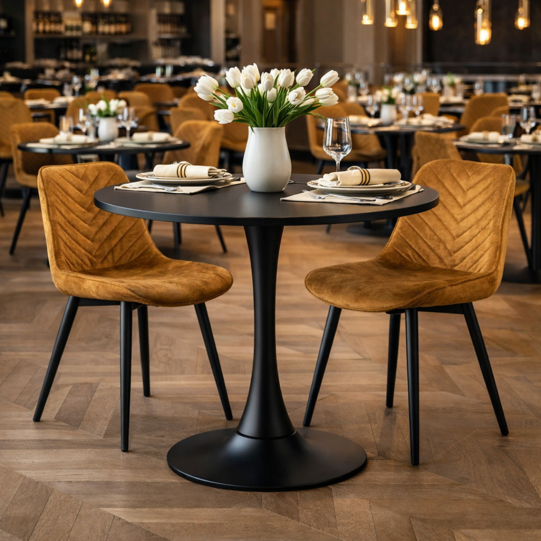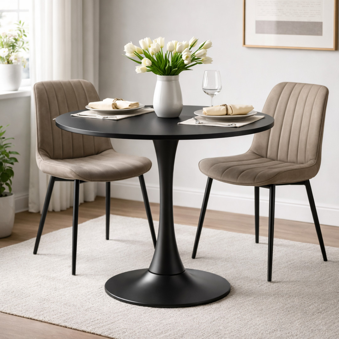 Étkezőasztal, fekete, átmérő 80 cm, REVENTON NEW