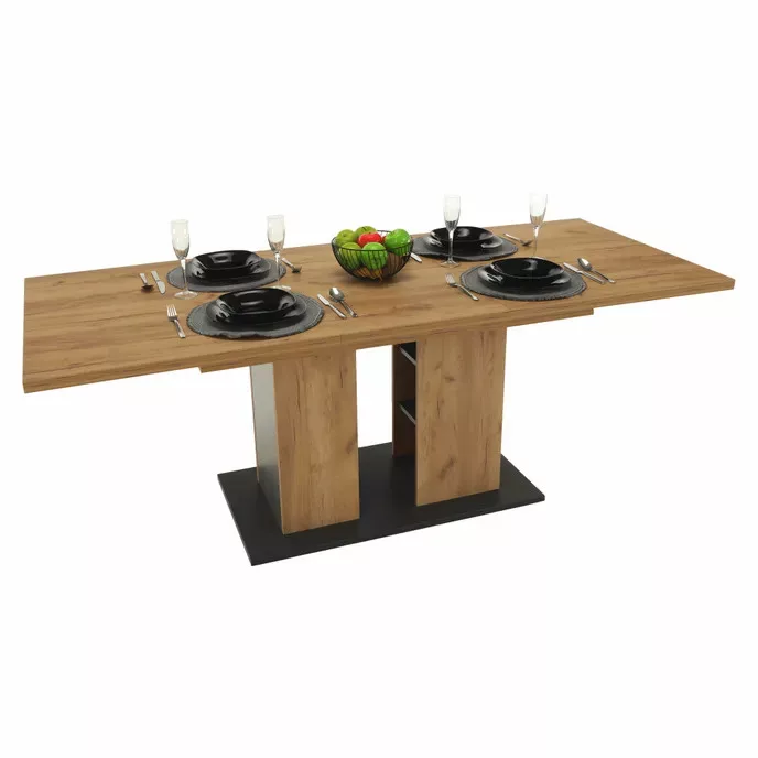 Étkezőasztal, tölgy craft arany/grafit szürke, 155-204x86 cm, FIDEL
