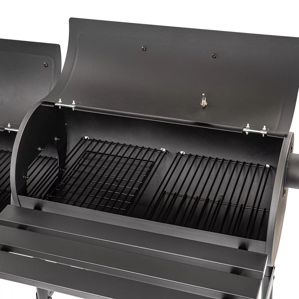 A dupla kamrás kialakítás lehetővé teszi a külön grillezést és füstölést. A füstkamrából áramló füst egyenletesen járja át az ételt, amely így gazdagabb ízvilágot kap. Az acélkonstrukció és a precíz hőmérséklet-szabályozás biztosítja a tökéletes BBQ élményt.