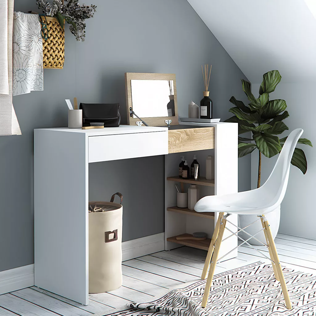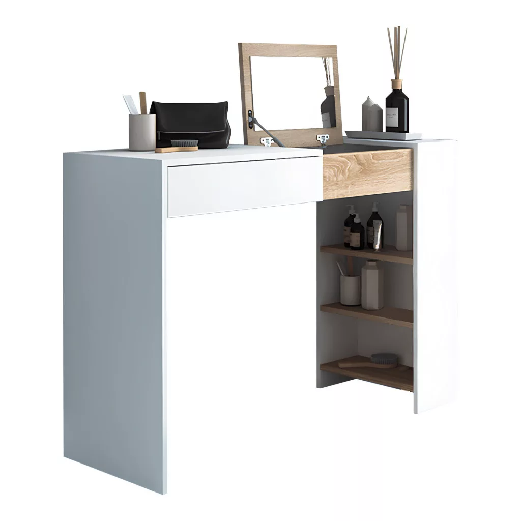 Fésülködőasztal/íróasztal, fehér/tölgy sonoma, ELIS