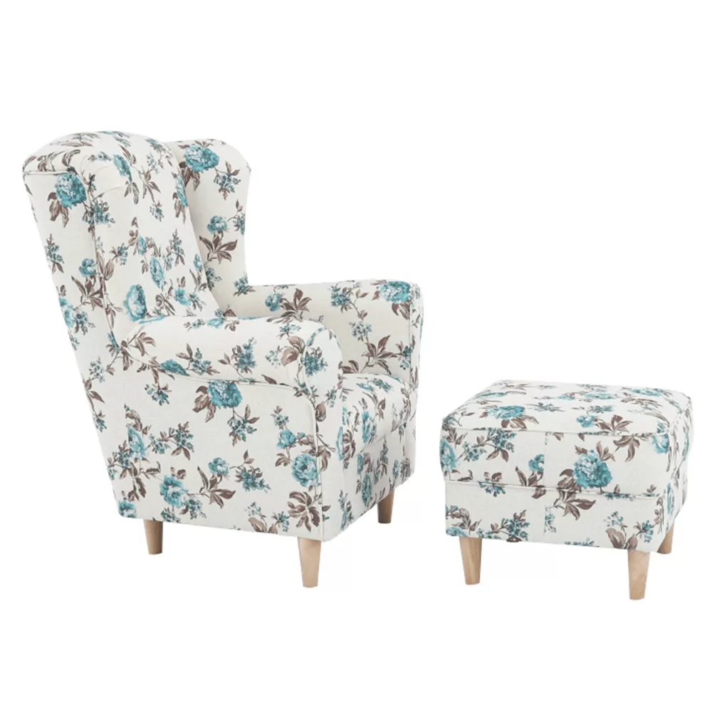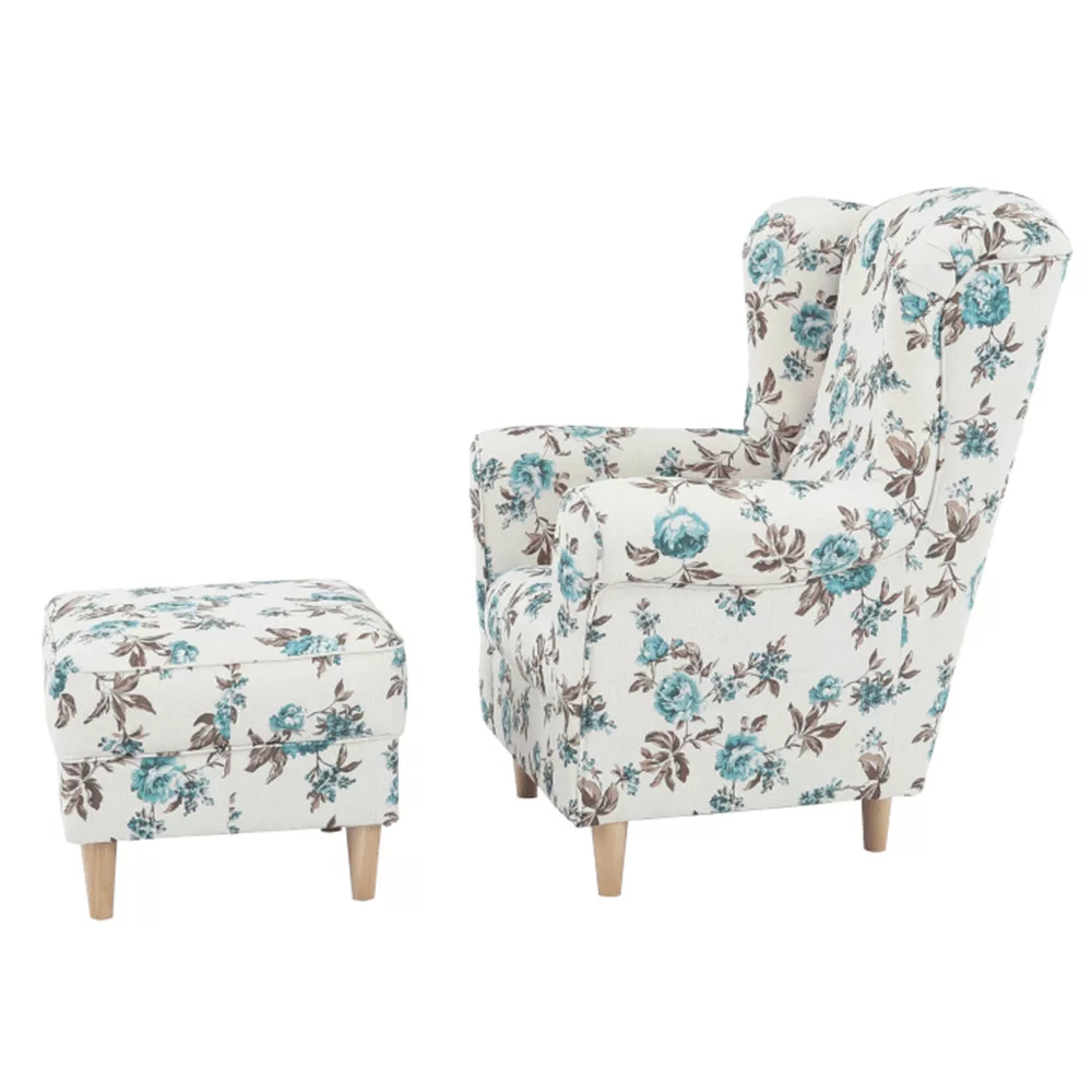 Kényelmes füles fotel puffal,