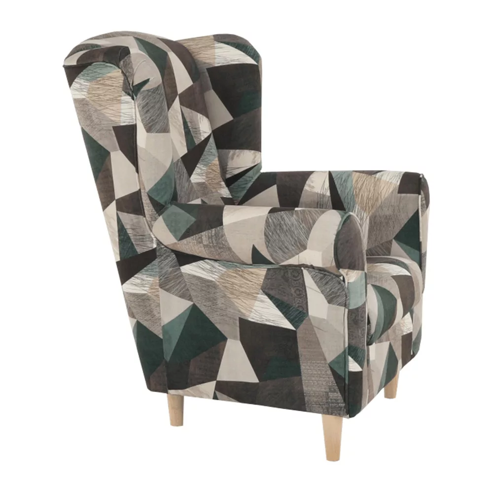 Fotel-füles CHARLOT Holm barna-zöld szövetben mintával. Fa lábak.