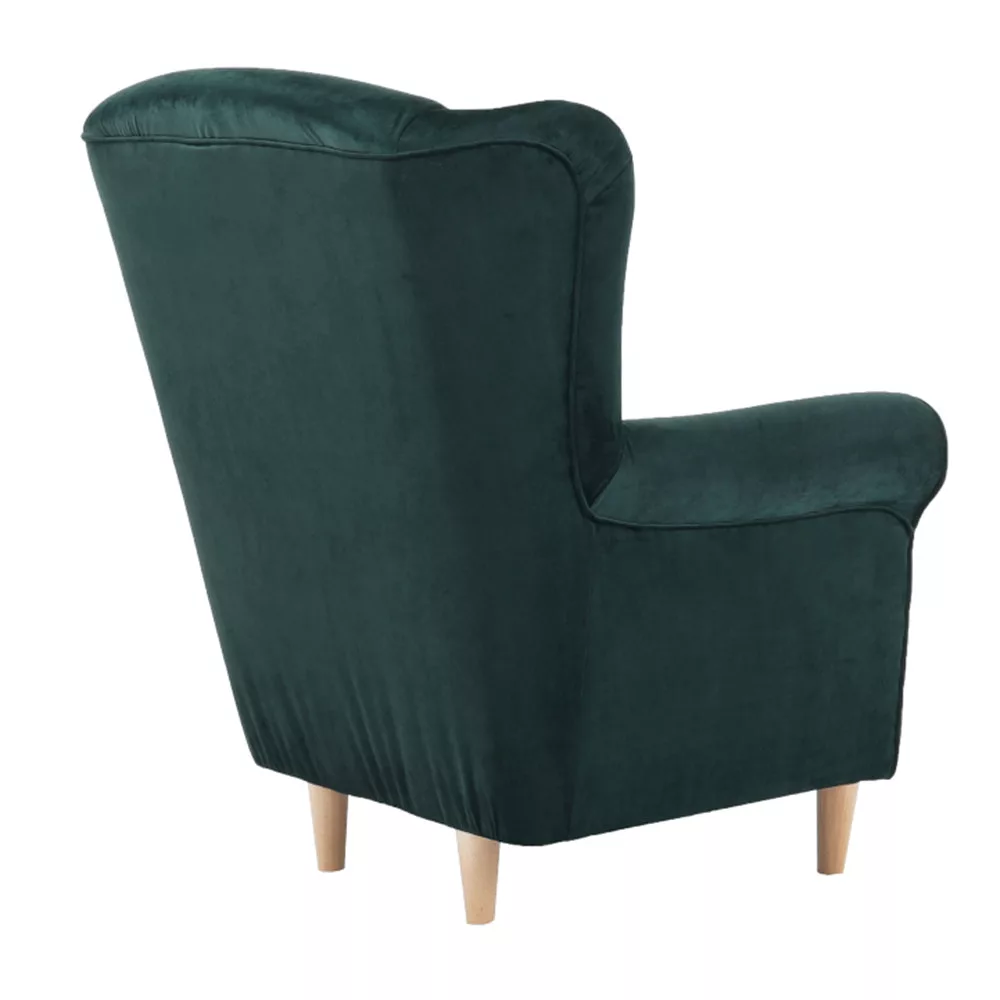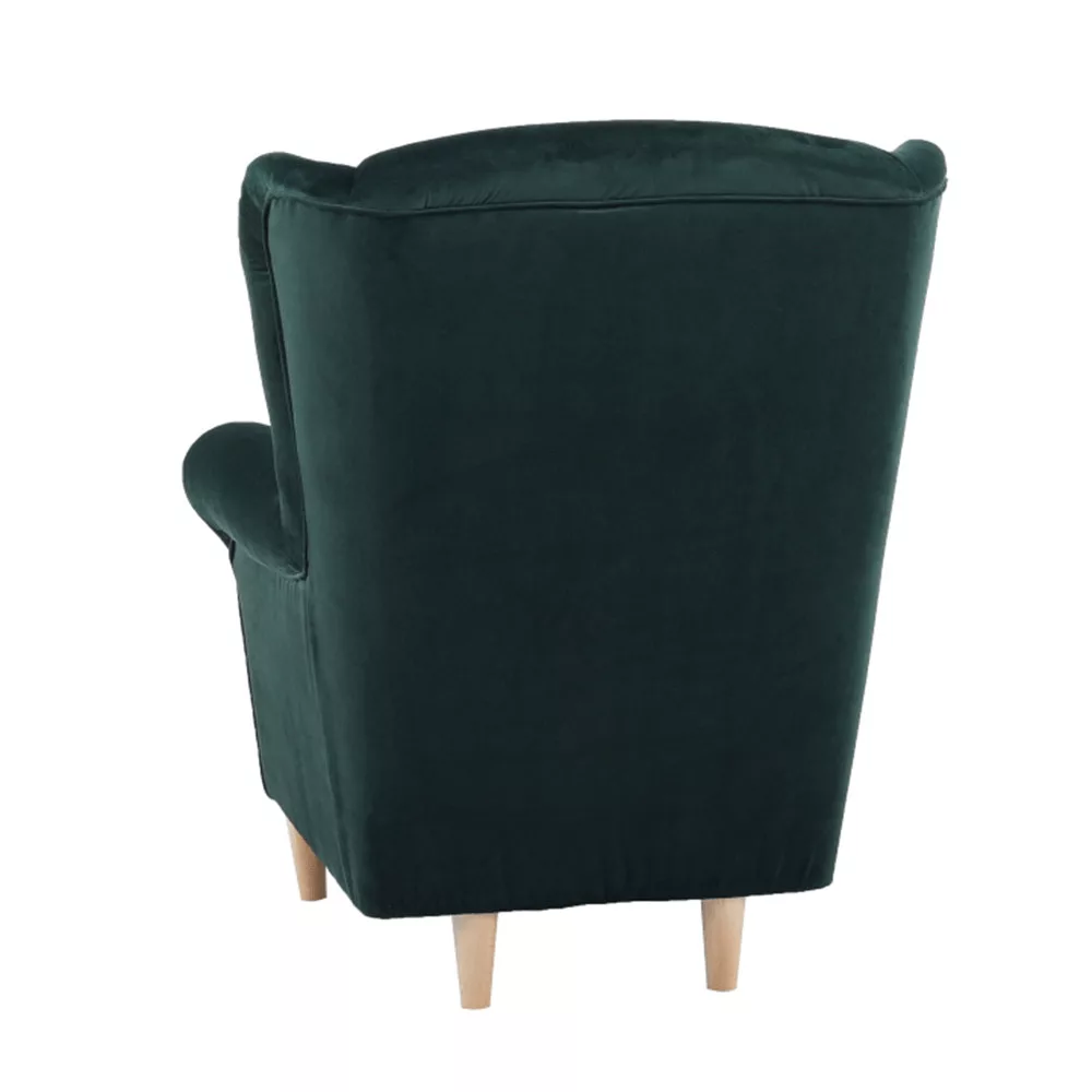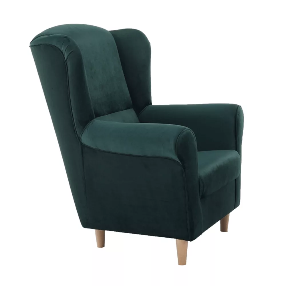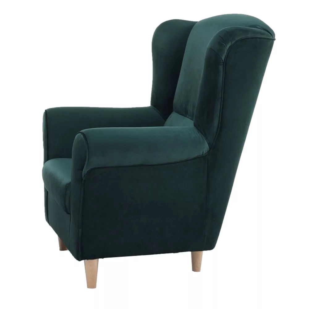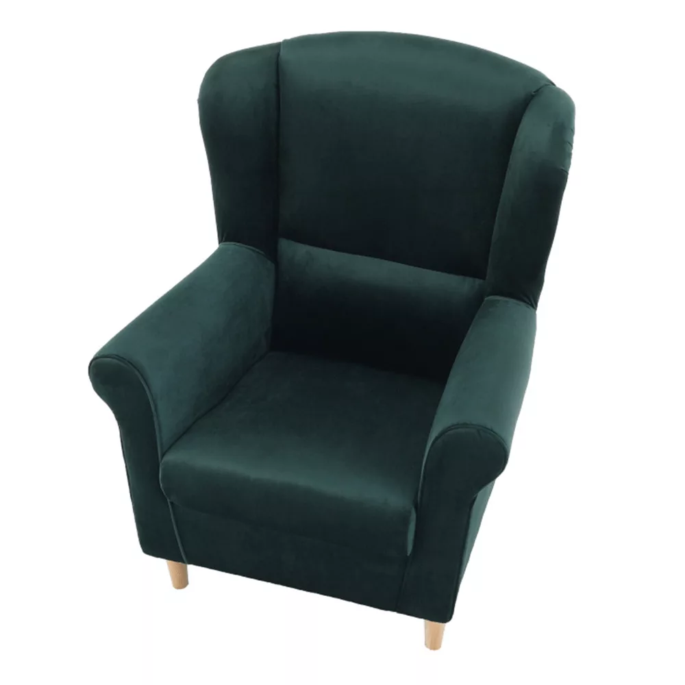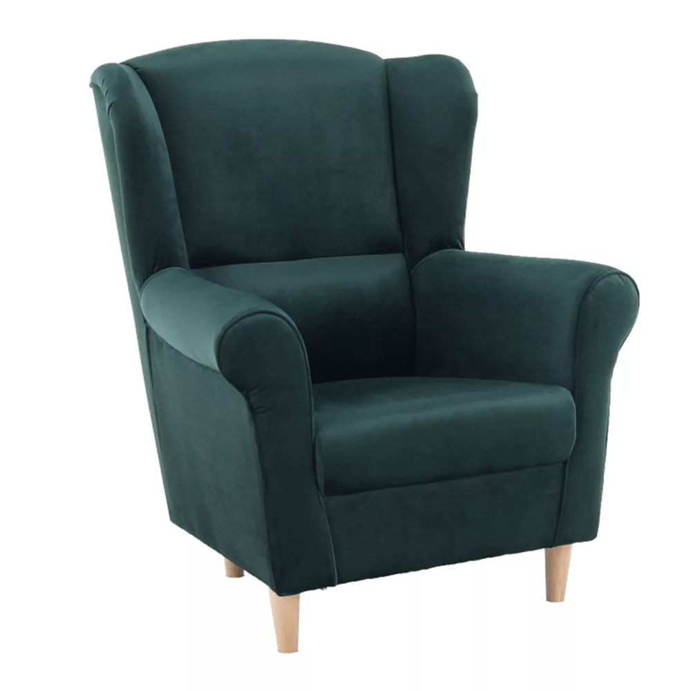 Fotel-füles CHARLOT riviera smaragd 38 szövetben. Fa lábak.