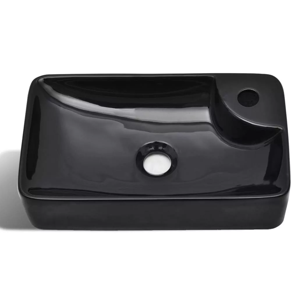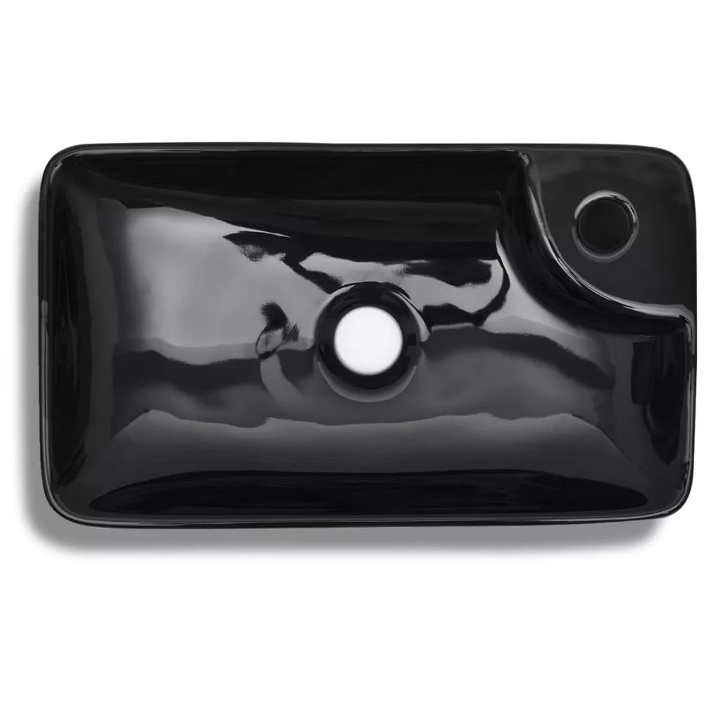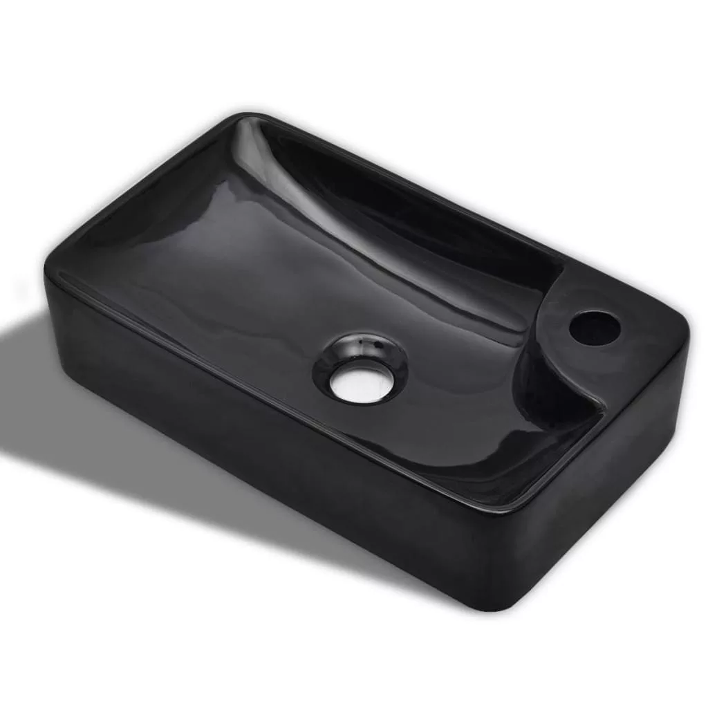 Fürdőszoba kerámia mosdó Csaptelep lukkal fekete