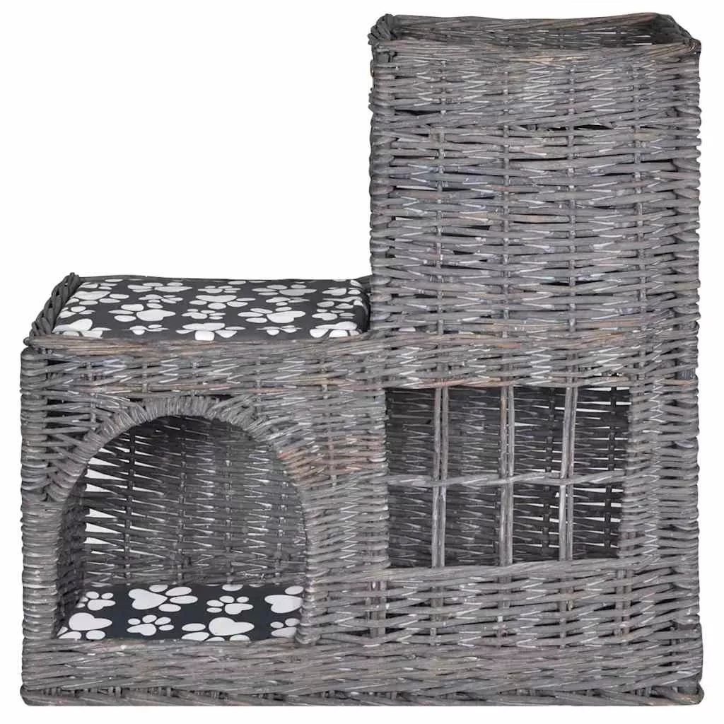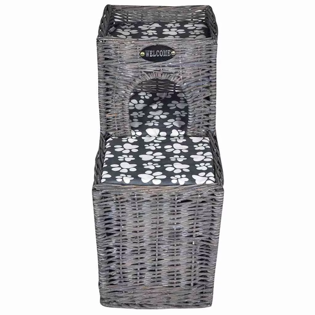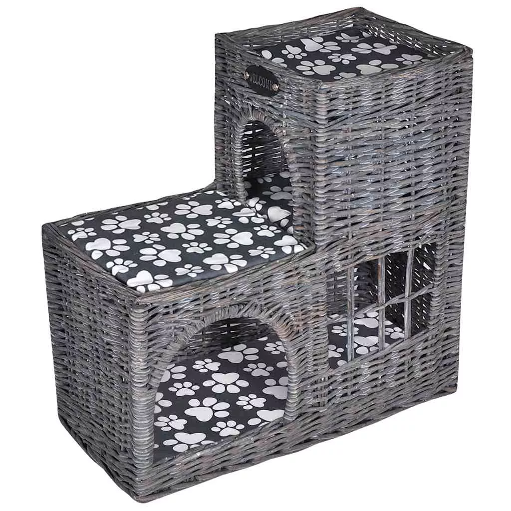 Ez a puha párnával ellátott masszív, de könnyűsúlyú fűzfa macskaház/kastély biztonságos menedéket nyújt kedvencének a játékhoz és a pihenéshez.