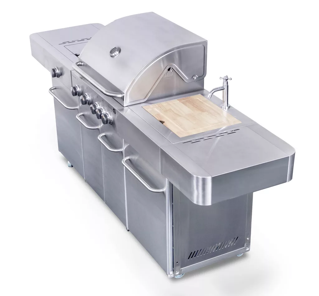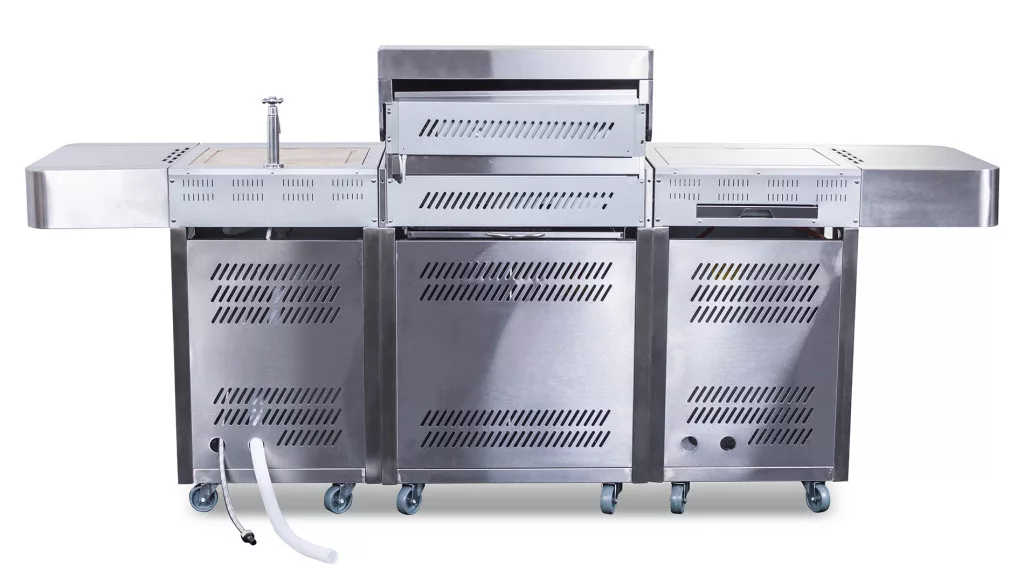Mi nem hiányozhat egy konyhából sem? A mosogató. És az nem hiányzik a G21 BBQ Arizona Premium Line grillnél sem. A beépített mosogató egy vízcsővel vanellátva, mely a kerti tömlőre csatlakoztatható. Az edények elöblítéseután a mosogatót egy fa vágódeszkával takarhatja le, így nagyobbmunkafelületet kap a finomságok elkészítésére a nyári grillezéshez.
